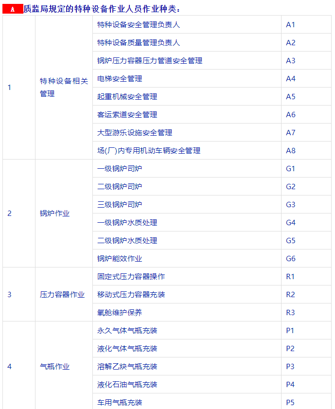 鍋爐證書可分為:工業(yè)鍋爐(G1)、電站鍋爐(G2)、鍋爐水處理(G3)以及鍋爐安全管理人員(A3)。